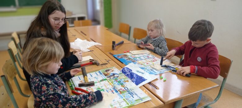 Ce matin, dans la classe de CE1 et CE2 de Mme Jeusselin Brault, les élèves ont bénéficié d’une intervention sur le tri des déchets. Vincent, du CPIE (Centre Permanent d’Initiatives pour l’Environnement), est venu expliquer aux élèves les gestes pour garder notre nature plus propre. Un déchet c’est quelque chose…