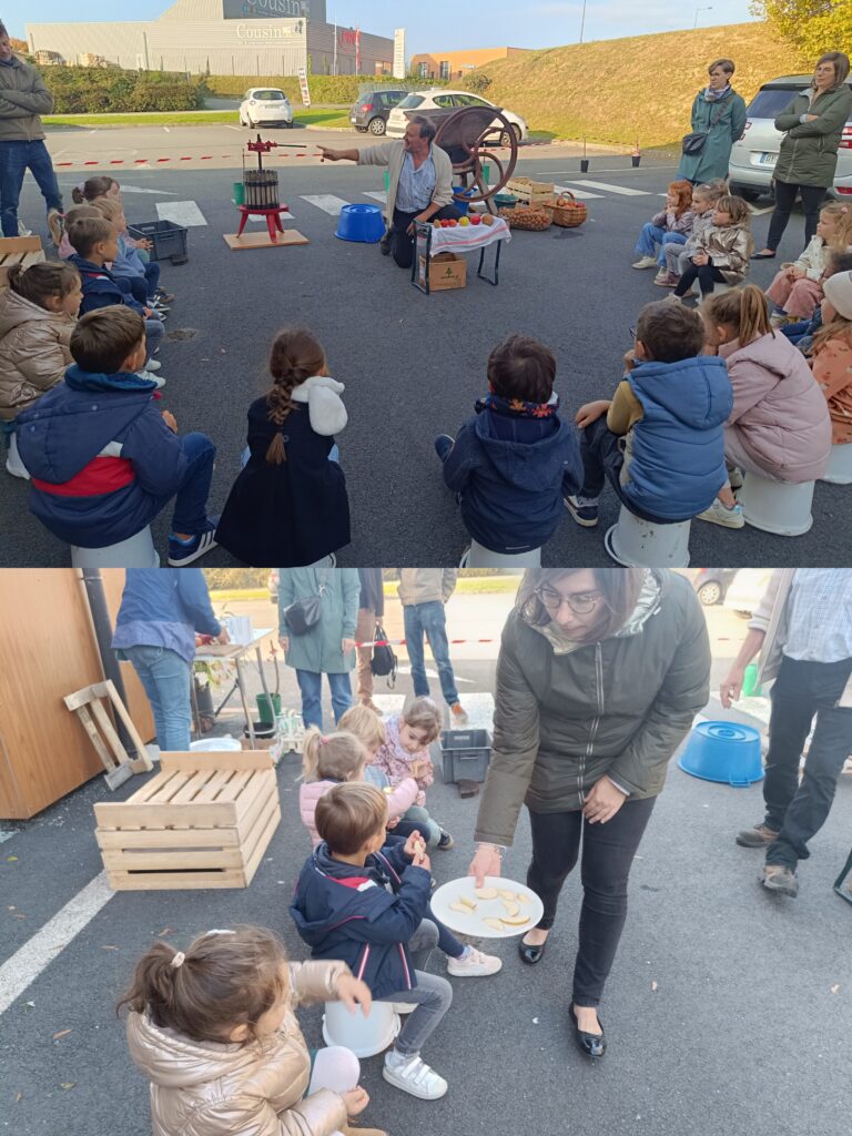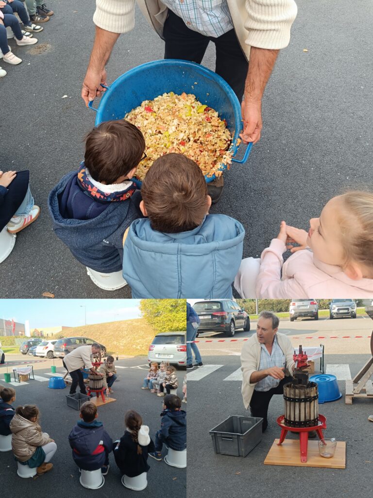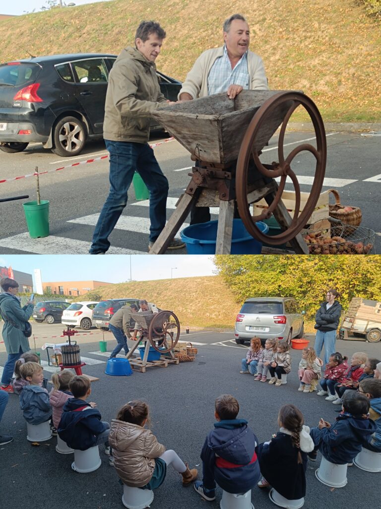 Ce matin, les GS se sont rendus à pied jusqu’à la Biocoop où Florent, ancien agriculteur de la Gasselinais proposait une animation sur la fabrication du jus de pomme dans le cadre de la semaine du goût.