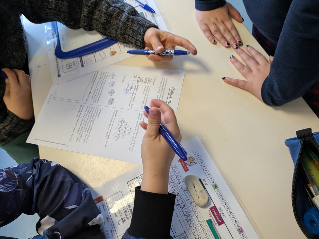 Ce matin, les CE1 et CE2 ont réalisé leur 1er rallye maths de l’année : par petit groupe, ils doivent résoudre des énigmes de calcul, logique, géométrie, nombres et mesures.