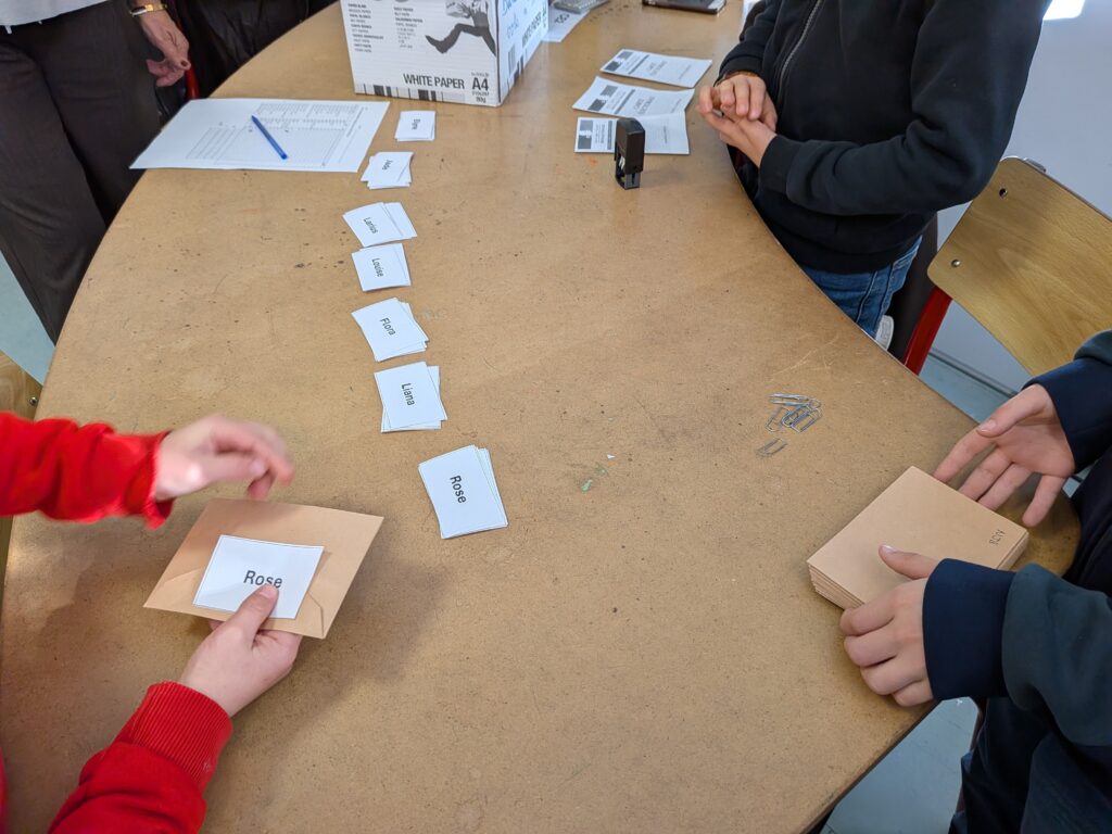 Après un dépouillement réalisé par les élèves (non candidats), Rose a été élue pour représenter notre classe à la commission cantine.