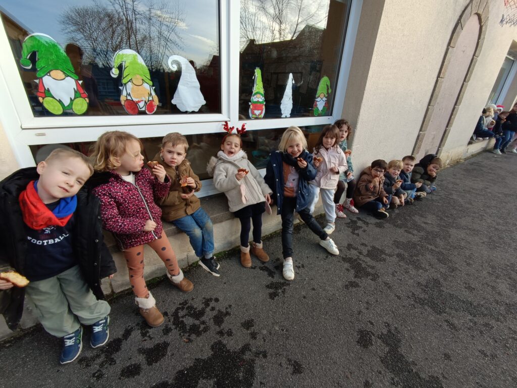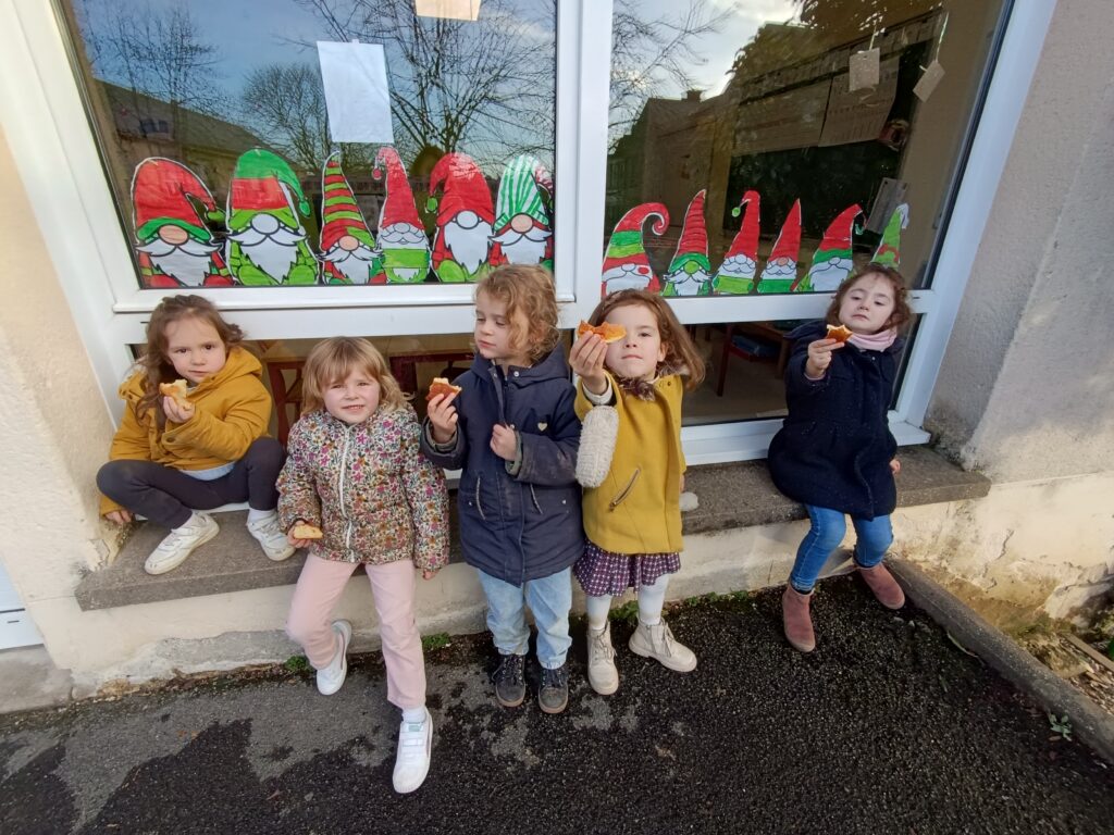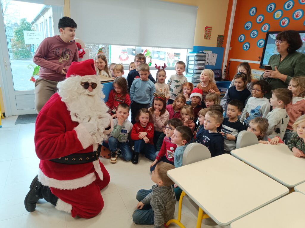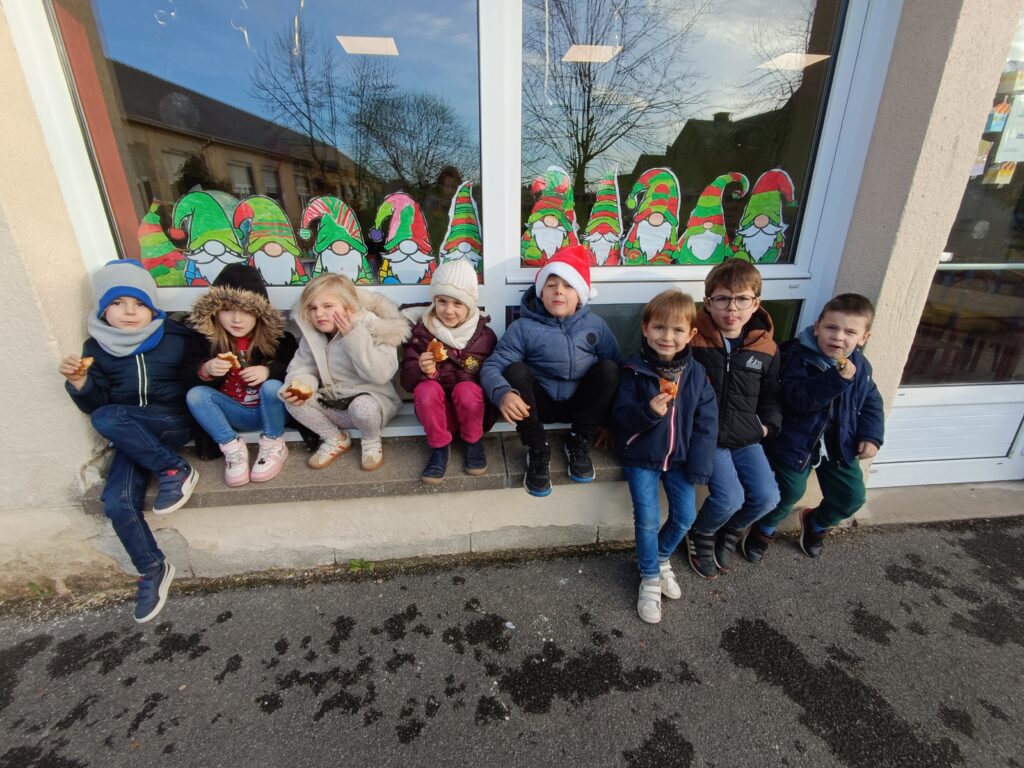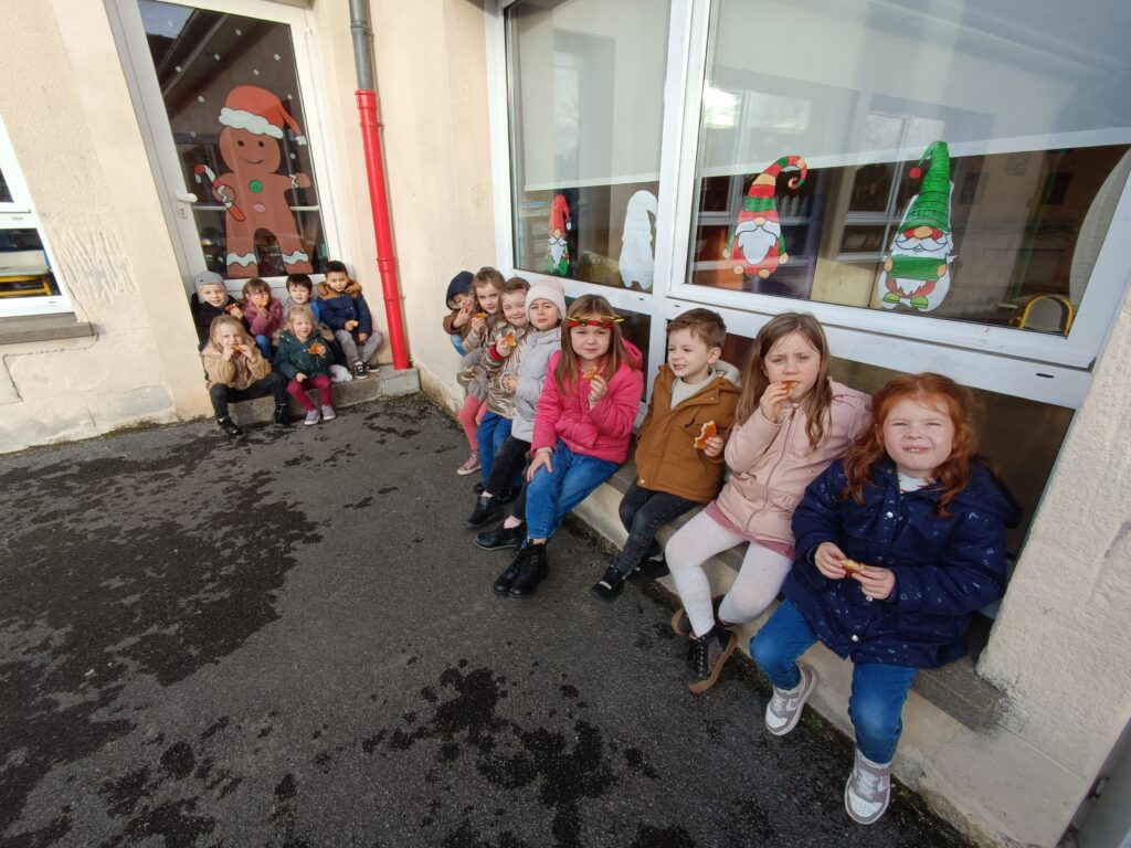 L’après midi, nous avons rangé nos classes puis nous avons regardé un court métrage sur noël. Nous avons ensuite reçu la visite du père noël et nous avons fini par partager la brioche offerte par la mairie.