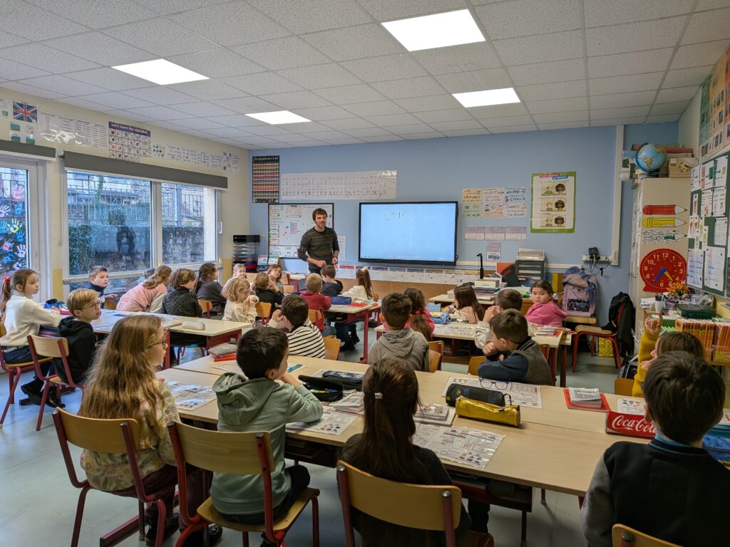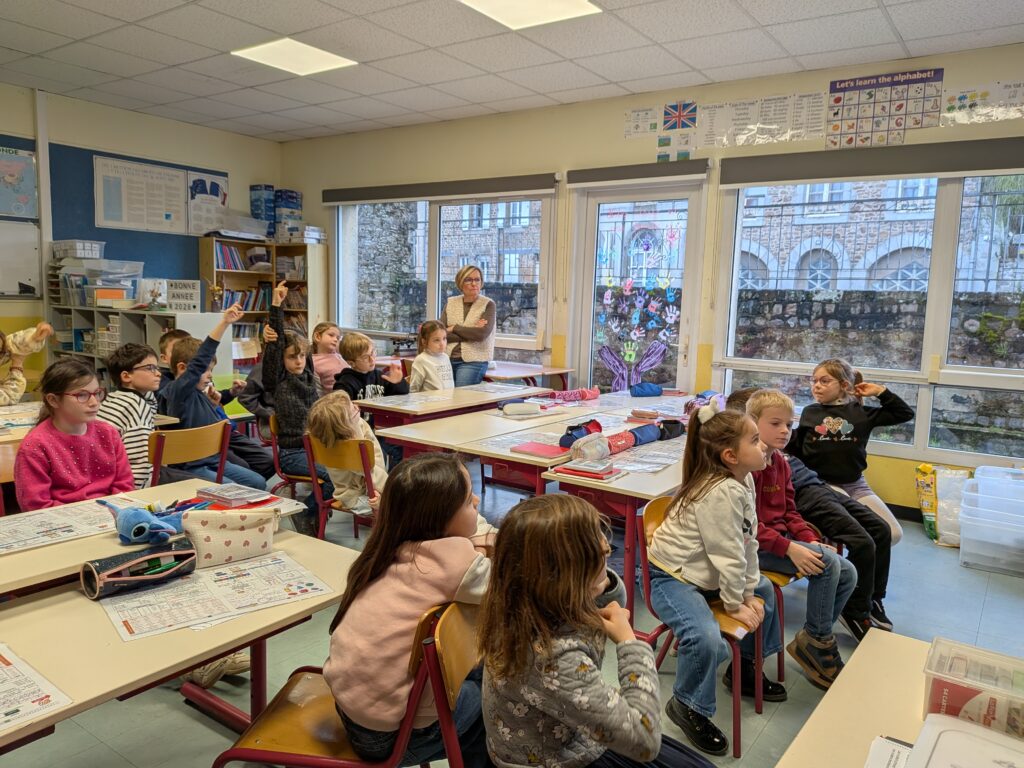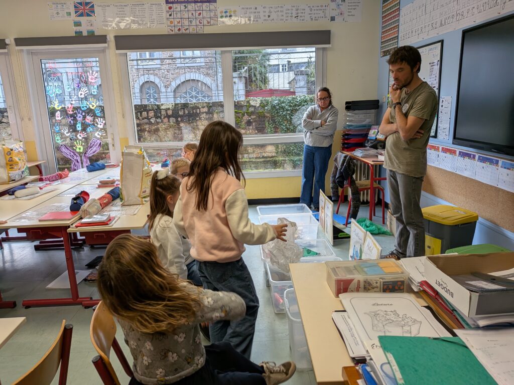 Vincent, du CPIE (Centre Permanent d’Initiatives pour l’Environnement), est venu expliquer aux élèves les gestes pour garder notre nature plus propre.