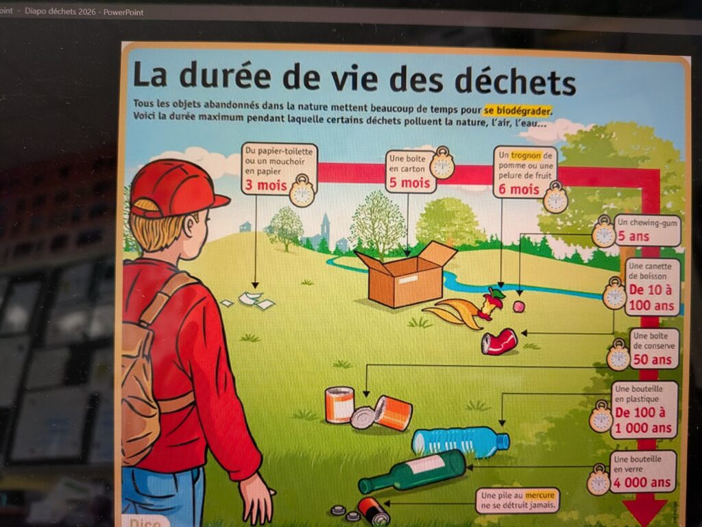 Nous avons ensuite regardé une vidéo sur “Pourquoi faut il réduire nos déchets ?”