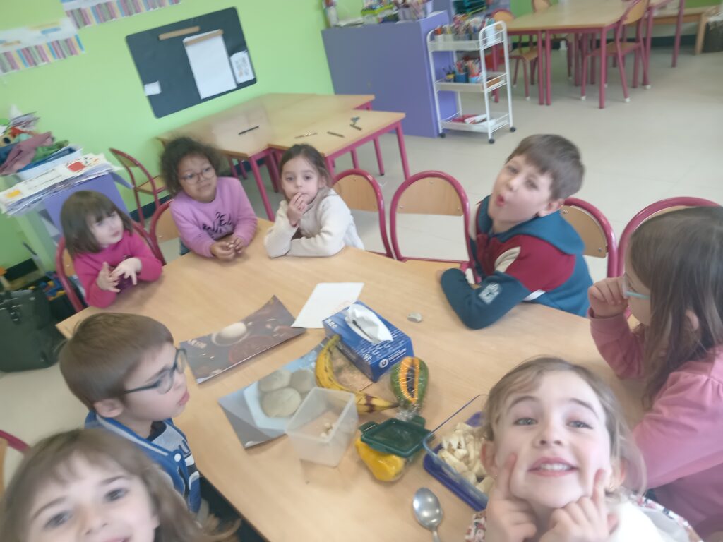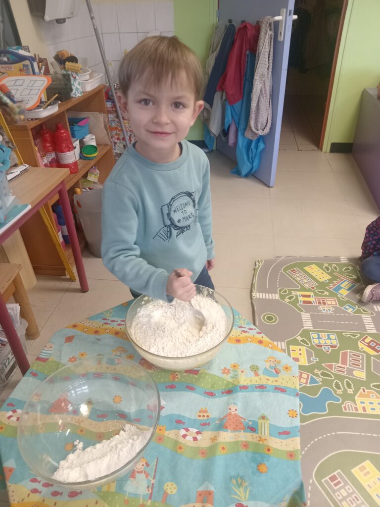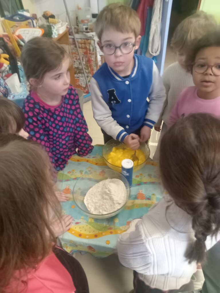 Mercredi matin, les GS ont cuisiné des gaufres congolaises appelées également gaufres poussière. Jeudi,les MS ont cuisiné par groupe de 5 un gâteau à l’ananas.