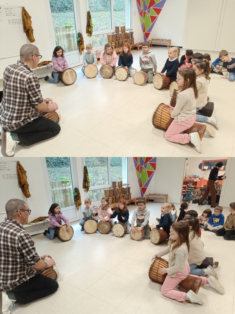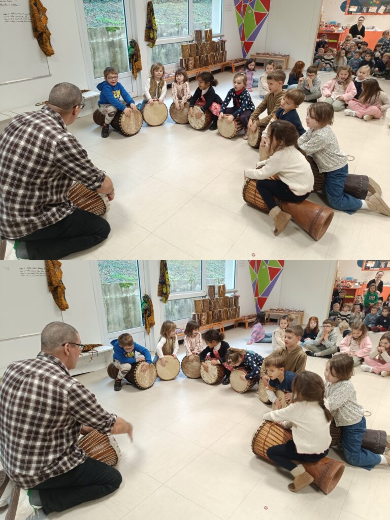 Durant toute la période 3, Julien nous a fait découvrir les rythmes d’Afrique. Au programme percussions corporelles et percussions sur les djembés.